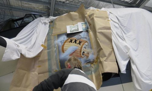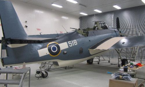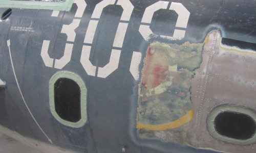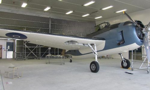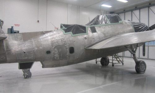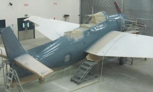 Our Grumman Avenger was in airworthy condition when acquired in Australia but our engineers inspection had identified a few things we wanted to improve on the aircraft. One of the tasks was to strip the airframe back to bare metal to identify and remove any corrosion and return it to the markings scheme it had worn when with Sir Tim Wallis’ Alpine Fighter Collection. The stripping process revealed up to seven coats of paint in some areas and revealed previous markings it had worn in the UK and stenciling from its time as an insecticide sprayer in the US.